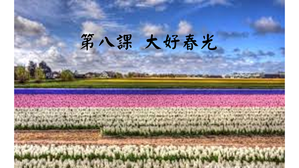 題解:本課題為「大好春光」,然而並非對自然春光實景的描述,而在說明人如何於自己有限的生命年光中,以信心為自己創下大好前程。